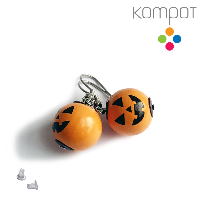Podzimní náušničky vyrobené ze dřeva připomínající vydlabané dýně.