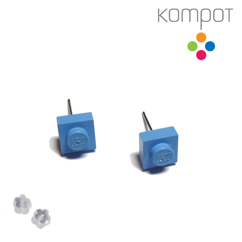 Naušnice vyrobené z kostek LEGA. Velmi lehké, vtipné, hravé a přesto elegantní.