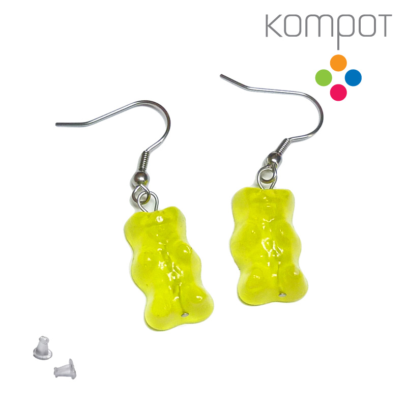 Oblíbení haribo medvídci vyrobení z pryskyřice. Zboží není určené k jídlu.   Délka i s háčkem :: 4 cm Cena je za 1 pár (2ks) Materiál :: pryskyřice   Barva: požadovanou barvu si prosím vyberte v rozrolovávacím menu   Háčky jsou z chirurgické oceli, jsou tedy hypoalergenní. Vhodné pro alergiky.   ... celý popis
