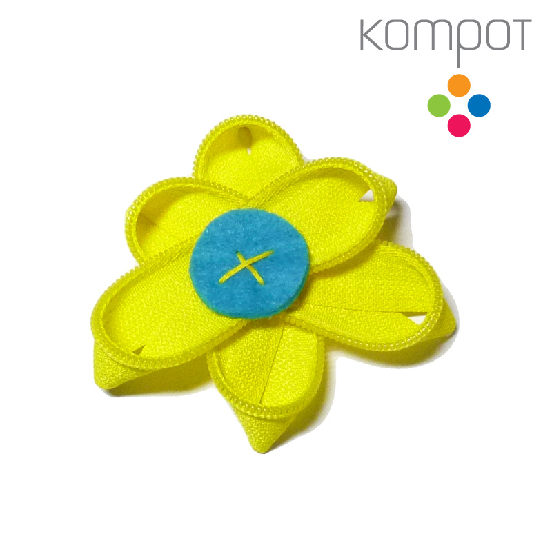 Brož ZIPOVÁ KYTIČKA :: žlutá s modrým středemSkladem80,0 Kč/ ks