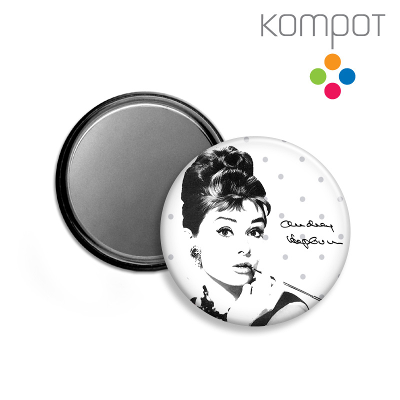 Praktické kapesní zrcátko s veselým motivem. Můžete jej mít stále při sobě.   Barva: požadovanou barvu si prosím vyberte v rozrolovávacím menu   Průměr 5,6 cm.   Zrcátko je možné vyrobit i s vlastním motivem. zrcátko, zrcátka, mirror audrey, hepburn, audrey hepburn, tisk, noviny, novinový tisk, odry... celý popis