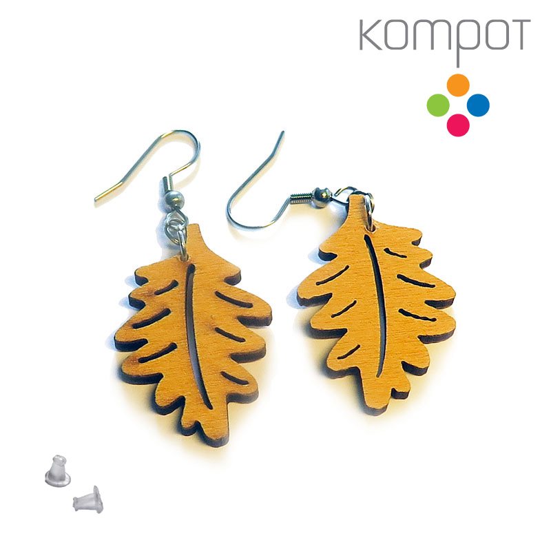 Naušnice vyrobené ze dřeva ve tvaru dubových listů - v nabídce v několika barvách.